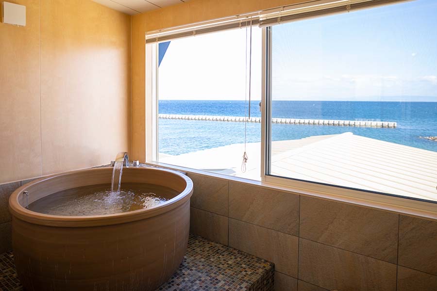 海を眺めながら入れる「貸し切り露天風呂つき」